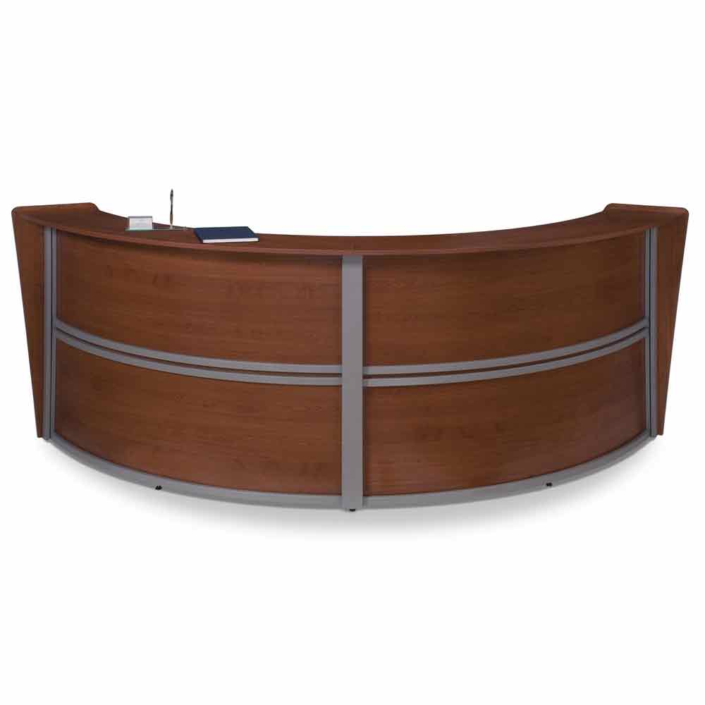 Make a great first impression on clients and guests while saving your budget with OFM's Marque Series double-unit curved reception station. The durable construction features a powder-coated painted steel frame and a thermo-fused melamine finished with self edge. But it's not all about looks! The convenient design keeps the user in mind. There are wire management cutouts in the interior desk to eliminate cord clutter. This model meets or exceeds industry standards for safety and durability, and is backed by OFM's limited lifetime warranty.
