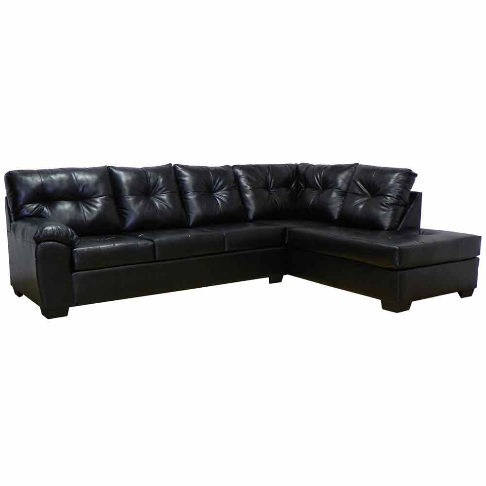 Unwind in classic comfort with this bonded leather sectional. Tight-back tufted cushions and block feet lend this spacious, cozy piece a refined look, while high-density foam promises superior comfort. Sturdy and lasting, its hardwood frame ensures years of relaxation.