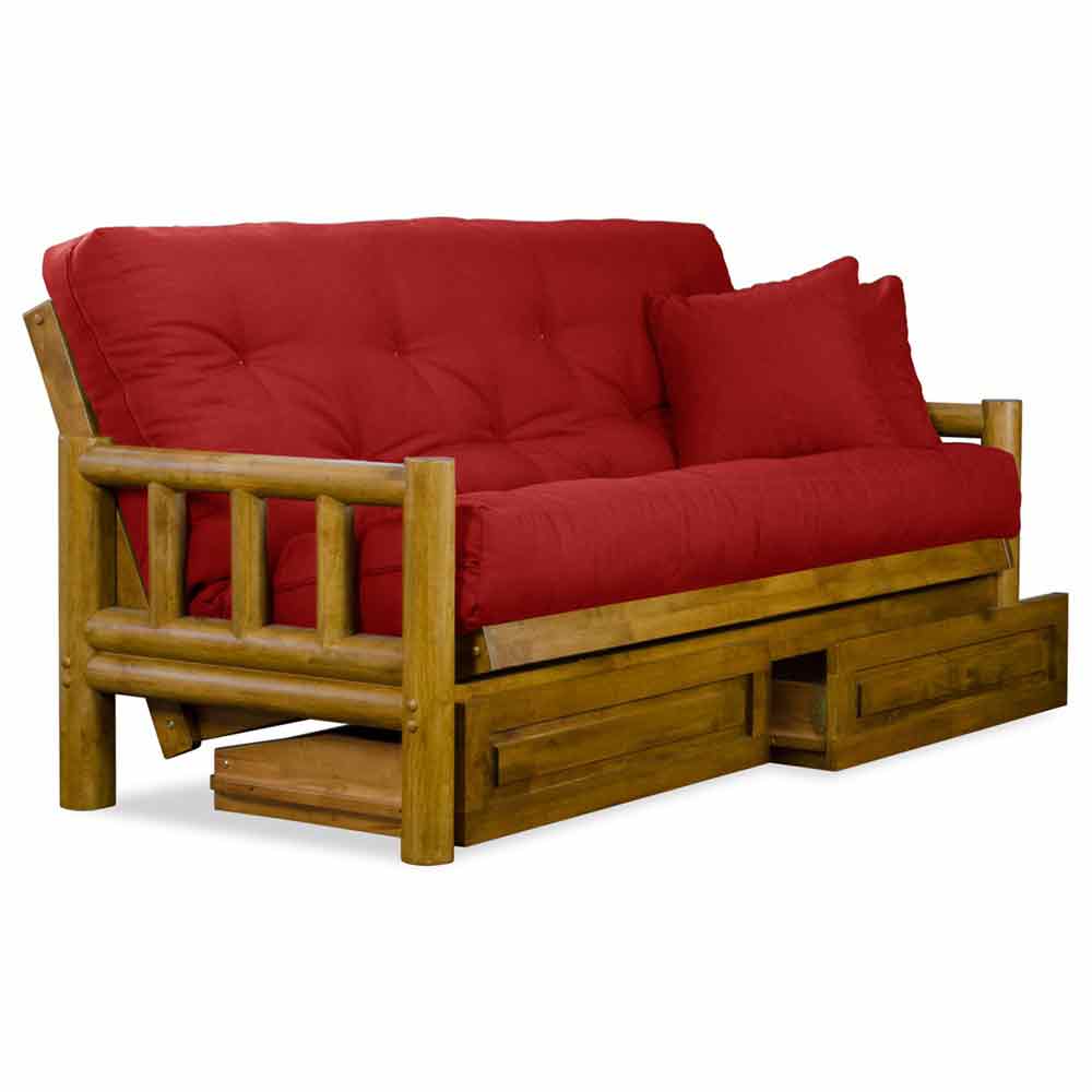 Tahoe Log Futon Frame and Mattress Set - Heritage Finish Maroon